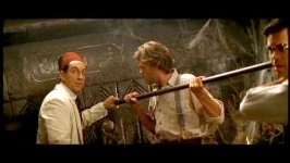 The three Americans expected to find treasures below the statue base, and Henderson himself was about to pry open the statue base for treasures, but Chamberlain stopped him from prying it, having the diggers present at the site open the compartment instead. Three diggers stepped forward and began to pry at the statue base's compartment, Chamberlain ordering them on to put force into it, but the result had the three diggers drenched in pressurised salt acid, part of a trap in the compartment.