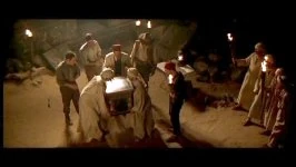 That night, the campsites were invaded by a small force of Medjai, armed and storming the site, as Chamberlain ran screaming for Henderson to wake up so that he might fight off the warriors. During the fray, several Medjai and several diggers were killed, resulting in a draw that had the Medjai leader demanding that both expeditions must leave the ruins or die. Both parties of treasure-hunters were concerned at what had caused these nomads to attack them, neither having any explanation other than O'Connell's reasoning that the Medjai were not after the treasure, that they valued water and not gold, and the resulting suggestion made that the groups could be rivals without being enemies, so as to join forces at night in case any more Medjai came back.